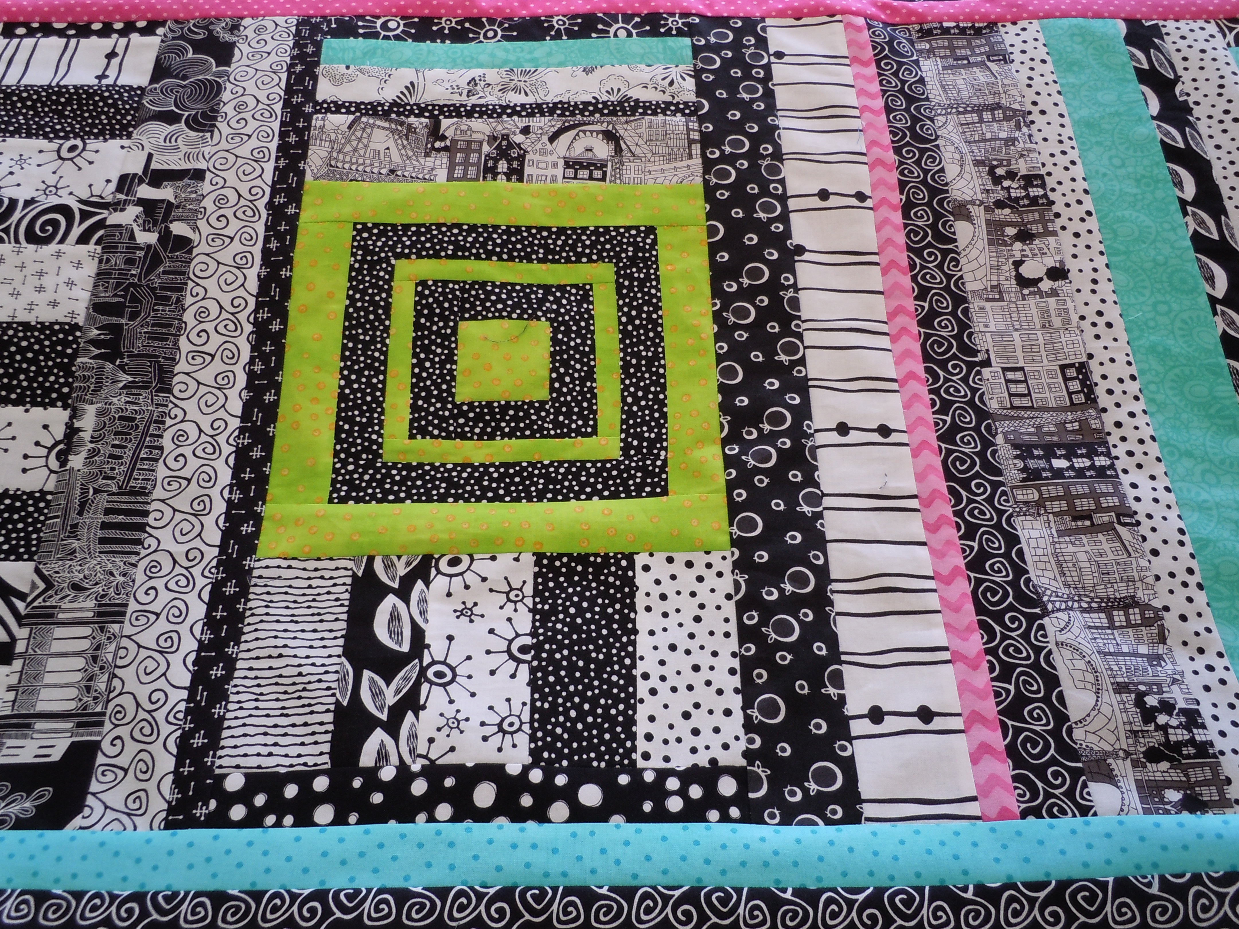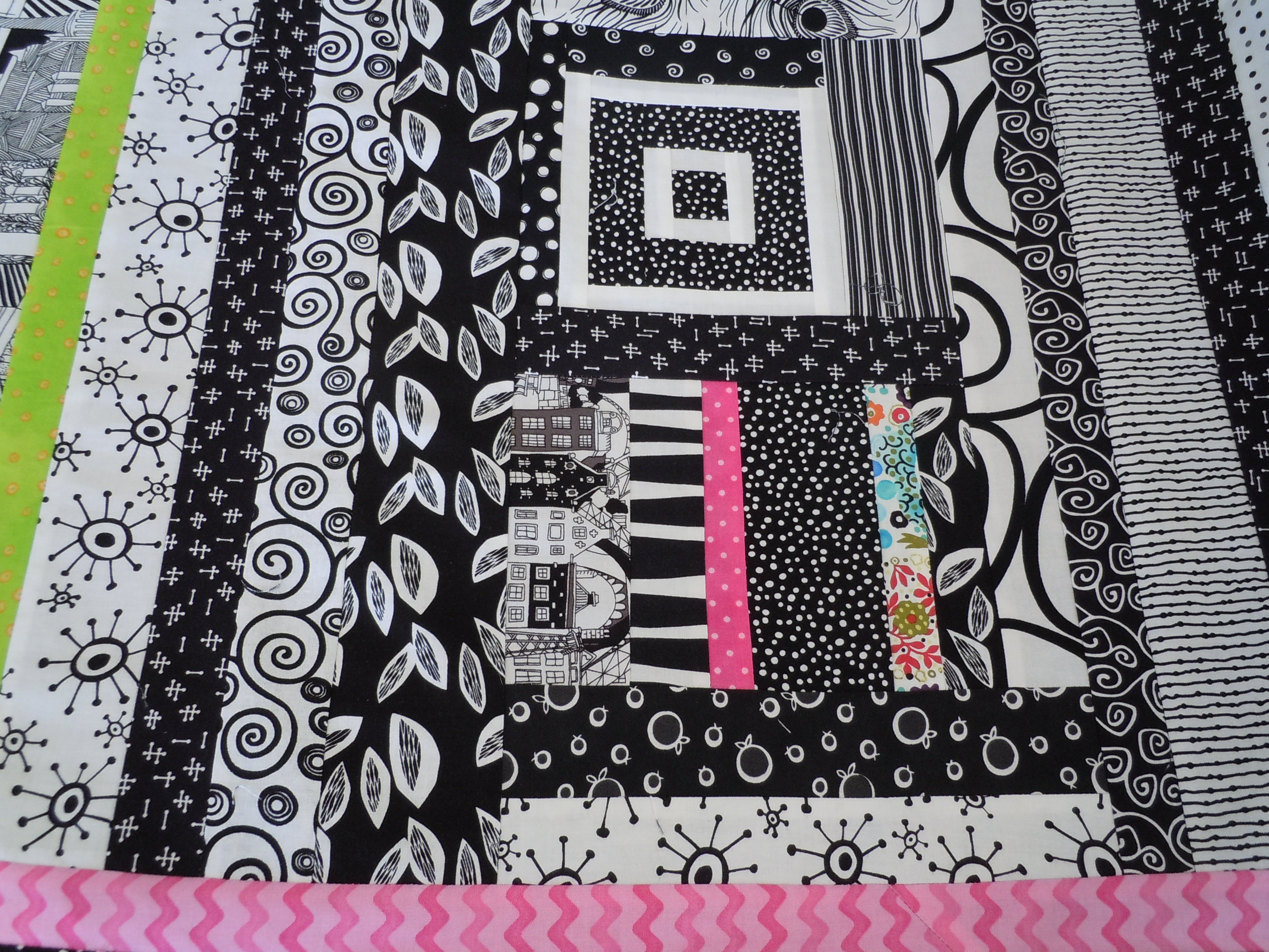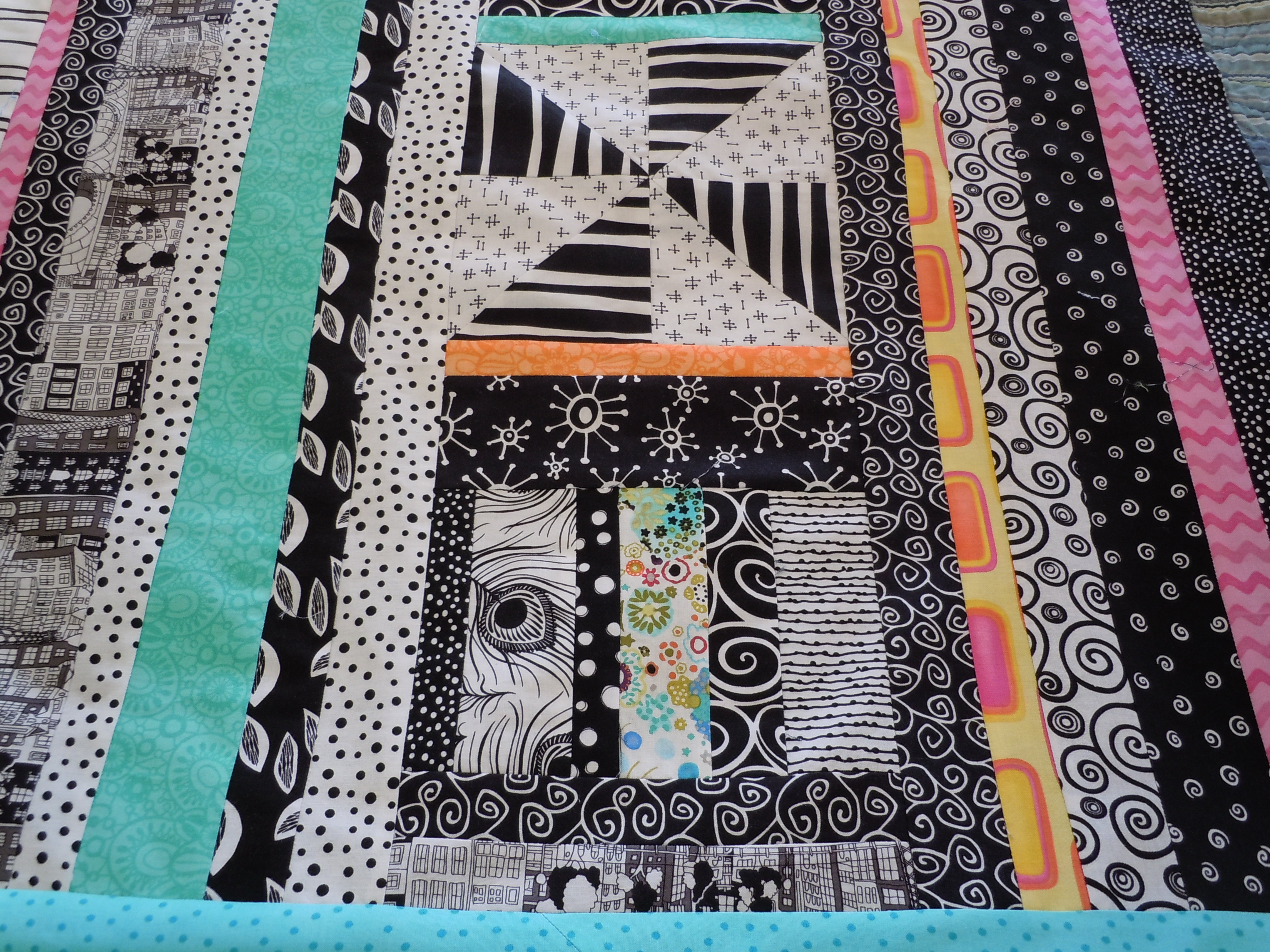 I had all of these black and white strips just hanging on my cabinets and sometimes they just get so noisy! And my fabric is over whelming me again so I decided to make a real SCRAP quilt, HA! Some of the blocks were testing new ideas and never worked in the end design, some were learning new techniques and then there are the pieces I just could NOT throw away!  I think I really, really want to keep her …..